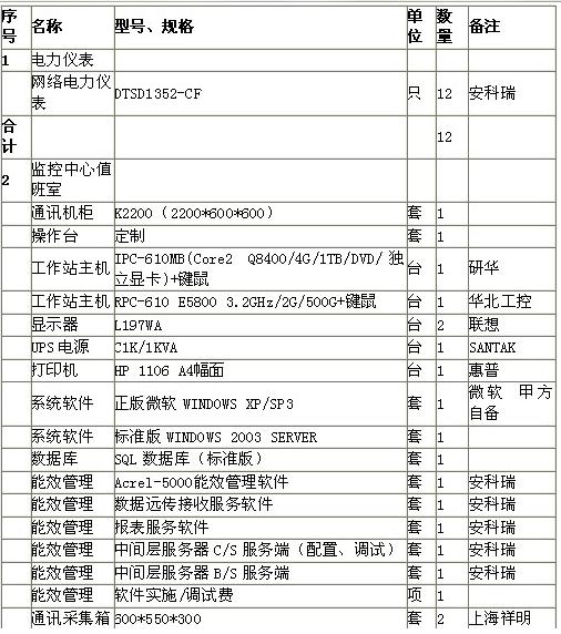 注:該報(bào)價(jià)清單預(yù)留了2個(gè)6.3變電所的通訊采集箱,便于用戶后期改造后系統(tǒng)的納入。