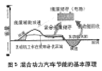 混合動(dòng)力汽車節(jié)、能的基本原理見圖5。