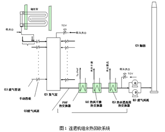 這種余熱回收技術(shù)的特點(diǎn)是利用煙氣熱量通過熱交換器來加熱水或氣,應(yīng)用到本機(jī)組的其他工序中,其最大的優(yōu)點(diǎn)是熱交換系統(tǒng)壓力低,不構(gòu)成壓力容器,維護(hù)方便,沒有安全隱患;缺點(diǎn)是熱回收效率低,投資也比較大。