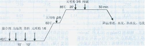 圖2粘/棉混紡紗用85℃活性染料常規(guī)染色工藝圖