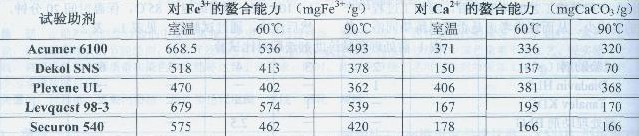 表4選擇的幾種分散螯合劑的性能一覽