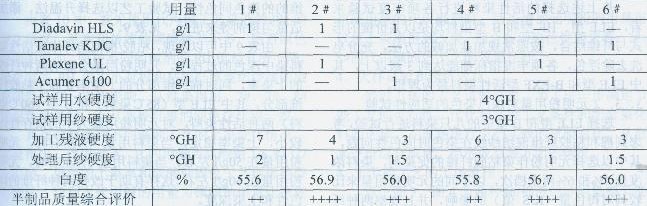 表2前處理預(yù)精練助劑對(duì)比主要指標(biāo)的結(jié)果