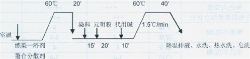 圖1粘/棉混紡紗用60℃活性染料常規(guī)染色工藝圖