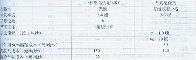 通過生產(chǎn)實(shí)踐,采用新型的皂洗劑NRC,即可以省去一道酸中和工序,約20分鐘左右的時(shí)問,每噸紗加工生產(chǎn)還能節(jié)省綜合成本約22元。
