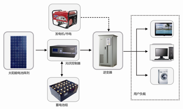 離網(wǎng)系統(tǒng)是指不直接與公共電網(wǎng)相連接的獨(dú)立系統(tǒng),常見的離網(wǎng)系統(tǒng):太陽(yáng)能照明,邊遠(yuǎn)地區(qū)的通訊基站,高速公路監(jiān)控系統(tǒng),牧區(qū)以及欠發(fā)達(dá)地區(qū)的用戶系統(tǒng)。主要有太陽(yáng)電池方陣、蓄電池組、太陽(yáng)能控制器、離網(wǎng)逆變器組成??迫ASPO系列產(chǎn)品可應(yīng)用于離網(wǎng)系統(tǒng)。