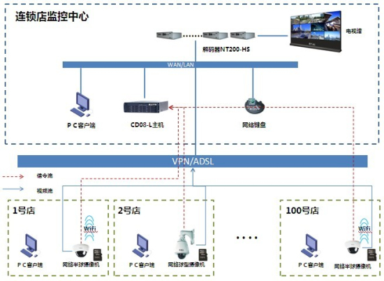 目前,連鎖店行業(yè)早已成為眾安防技術(shù)應(yīng)用的重點(diǎn)領(lǐng)域。作為資深的高清監(jiān)控綜合解決方案先鋒,筆者所在公司針對(duì)連鎖店行業(yè)專門推出了一系列完整的 高清解決方案,從前段畫面數(shù)據(jù)采集到高清存儲(chǔ)再到高清畫質(zhì)顯示,充分滿足了連鎖店面對(duì)高清數(shù)據(jù)處理、存儲(chǔ)以及顯示的需求,下面將通過實(shí)際的應(yīng)用案例來進(jìn)行 詳細(xì)的介紹。