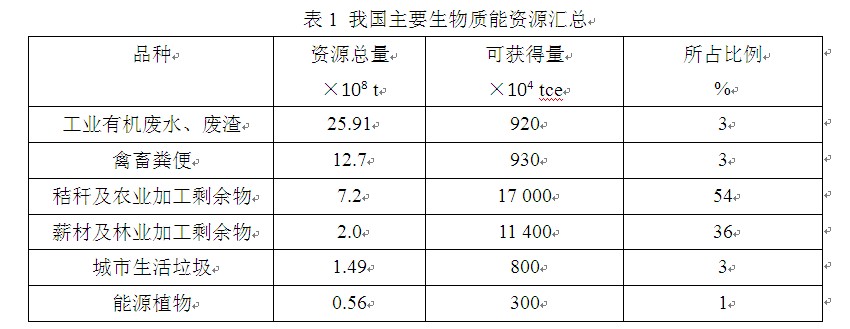 表1 我國(guó)主要生物質(zhì)能資源匯總