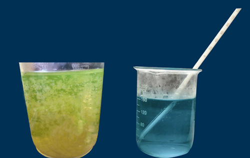 左圖:劣質(zhì)防凍液加熱后出現(xiàn)絮狀膠體懸浮物(偏硅酸鈉膠體) 右圖:我司產(chǎn)品無論低溫還是高溫溶液始終澄清透明