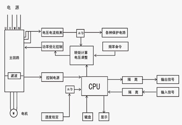 通過智能化系統(tǒng)按需要進行軟件組態(tài),采用MPF技術進行閉環(huán)控制,在線自動檢測風機、用電系統(tǒng)的運行狀況(溫度、流量、壓力、液位等),在滿足該用電系統(tǒng)的生產(chǎn)工藝要求的前提下,合理的調(diào)整電機的功率,使其風機、水泵系統(tǒng)工作在最高效率狀態(tài),而達到節(jié)能的目的。