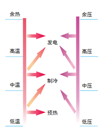 通過循環(huán)利用低品余熱余壓,可減少[熱能-機械能-熱能]轉(zhuǎn)化效率的二次損耗,利用效率更高。