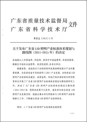 根據(jù)省委、省政府關(guān)于加快培育和發(fā)展戰(zhàn)略性新興產(chǎn)業(yè)的重要部署,為促進(jìn)我省半導(dǎo)體照明( LED)產(chǎn)業(yè)發(fā)展,加快我省LED照明產(chǎn)業(yè)標(biāo)準(zhǔn)體系建設(shè),省質(zhì)監(jiān)局、科技廳組織省標(biāo)準(zhǔn)化研究院等單位開展了廣東省LED照明產(chǎn)業(yè)標(biāo)準(zhǔn)體系規(guī)劃與路線圖研究 工作,形成了《廣東省LED照明產(chǎn)業(yè)標(biāo)準(zhǔn)體系規(guī)劃與路線圖(2 011-2 015)》,現(xiàn)將該成果予以發(fā)布。請各單位結(jié)合我省LED照明產(chǎn)業(yè)發(fā)展實(shí)際,鼓勵企事業(yè)單位積極參與LED照明產(chǎn)業(yè)標(biāo)準(zhǔn)制修訂工作,不斷健全我省LED照 明產(chǎn)業(yè)標(biāo)準(zhǔn)體系。