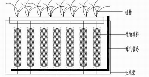 植物修修復(fù)過程中,實(shí)際靠植物直接吸收去除的污染物質(zhì)還不到實(shí)際去除率的一半,這其中植物與微生物的聯(lián)合作用有非常大的貢獻(xiàn),植物可能從增加根際氧濃度, 分泌微生物營養(yǎng)物質(zhì)或者活性物質(zhì)以及為微生物提供載體等方面影響微生物的密度和分布。利用生物膜——生態(tài)復(fù)合強(qiáng)化處理技術(shù)處理重污染河段,可以通過人工強(qiáng) 化復(fù)氧和植物分泌和外加附著載體多方面刺激微生物的生長,提高微生物的處理效應(yīng),同時(shí)載體的吸附和植物的吸收三重去除可大大提高系統(tǒng)對水中污染物的去除效 率。處理采用好氧,缺氧兩級處理,以達(dá)到更佳的處理效果。