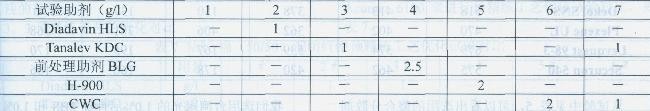 表1前處理預(yù)精練助劑選用對(duì)比試驗(yàn)