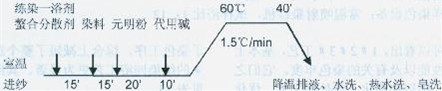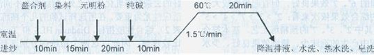 圖1粘/棉混紡紗用60℃活性染料常規(guī)染色工藝圖