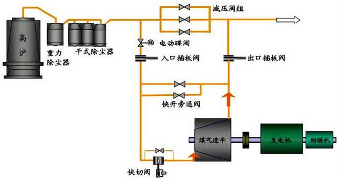 TRT工藝有干、濕之分,使用水來降低煤氣溫度和除塵并設(shè)置TRT裝置的工藝稱為濕式TRT,而采用干式除塵(布袋或電除塵)并設(shè)置TRT裝置的工藝則稱為干式TRT。