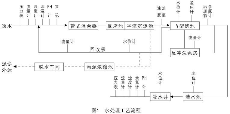 1號分控站主要完成源水參數(shù)采集及監(jiān)控,對加氯加礬及沉淀池的工藝監(jiān)控。