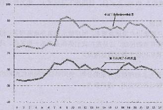 自2003年開(kāi)始引入計(jì)算單位時(shí)間、單位面積的萬(wàn)m2均的失水指標(biāo)體系。采暖初期,每日失水的萬(wàn)m2均指標(biāo)在4.2噸左右,日失水量在4500噸,企業(yè)日均經(jīng)濟(jì)損失大。通過(guò)每日繪制失水曲線,對(duì)比分析失水產(chǎn)生的原因,選定重點(diǎn)治理目標(biāo),對(duì)癥施治,采取查漏與節(jié)水劑并舉,日失水量降到2500噸左右,失水指標(biāo)下降為2.4噸/萬(wàn)m2日。