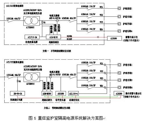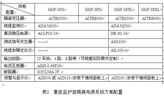 4.醫(yī)療智能絕緣監(jiān)測(cè)儀在醫(yī)療2類場(chǎng)所的應(yīng)用方案醫(yī)療智能絕緣監(jiān)測(cè)儀在實(shí)際現(xiàn)場(chǎng)應(yīng)用的方案如圖4和圖5,方案配置見(jiàn)表1和表2: