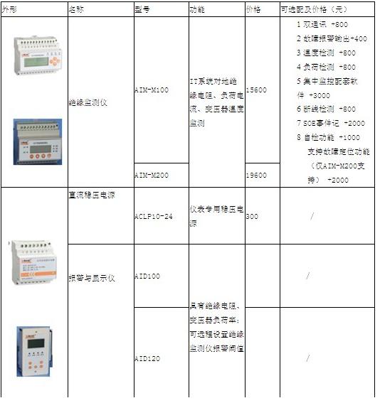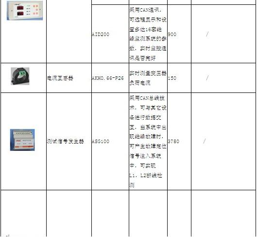 5主要產(chǎn)品及電源柜的報(bào)價(jià)方案為了方便廣大客戶對(duì)安科瑞產(chǎn)品的選擇,現(xiàn)列出產(chǎn)品報(bào)價(jià),如下表所示:5.1 GGF-I系列ICU/CCU病房隔離電源柜