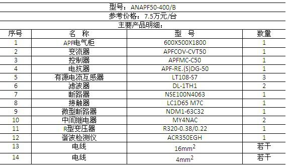 3.3 主要設備清單有源濾波器報價及主要元件清單