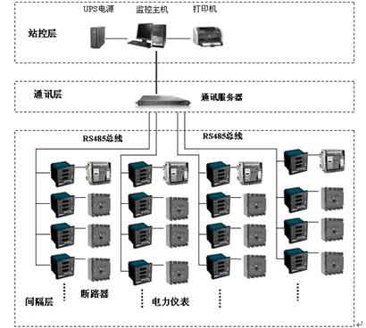間隔設備層主要為:多功能網(wǎng)絡電力儀表、開關(guān)量、模擬量采集模塊和智能斷路器等。這些裝置分別對應相應的一次設備安裝在電氣柜內(nèi),這些裝置均采用RS485通訊接口,通過現(xiàn)場MODBUS總線組網(wǎng)通訊,實現(xiàn)數(shù)據(jù)現(xiàn)場采集。