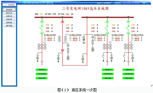 5.2系統(tǒng)功能5.2.1系統(tǒng)主界面系統(tǒng)主監(jiān)控畫面,主要實時監(jiān)測高壓回路的運行狀態(tài),紅色代表合閘,綠色代表分閘,斷路器變位時會發(fā)出報警信號,提醒用戶及時處理故障。本項目10KV高壓段采用AM5保護器,軟件界面實時顯示綜保的運行狀態(tài),實時顯示綜保的測量參數(shù)。