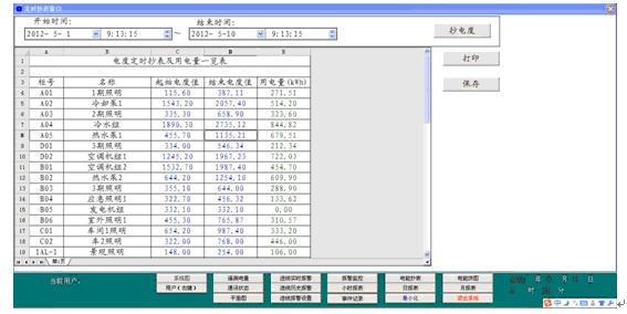 登錄普通權限用戶,通過主界面的操作,可以查看各回路運行的電參量(電流、電壓、有功、無功、功率因數(shù)、電度);登錄最高權限用戶,可以實現(xiàn)系統(tǒng)內部電度報表、電流曲線、報警信息的打印及導出功能。