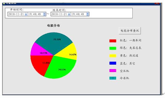 5)電能餅圖可以查看任意時段不同回路的電能百分比,方便了公司內部能耗的調整。