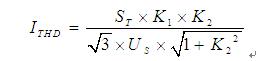 K1為負(fù)荷率:即負(fù)荷占變壓器額定容量的比例,通常取0.6~0.8,這里取0.6;K2為諧波系數(shù),集中補償場合適用于整體諧波污染不高但比較分散的場合,取12%;ST為變壓器額定容量,單位kVA;US為低壓系統(tǒng)電壓,一般取0.4.