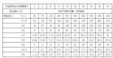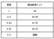 欠載保護(hù)動(dòng)作時(shí)間對照表