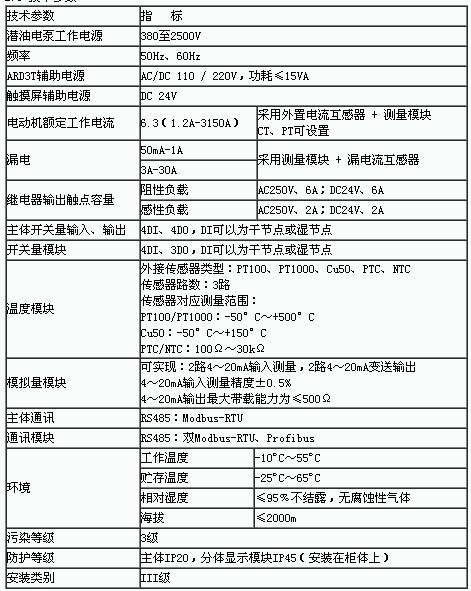 智能保護(hù)器對潛油電泵實(shí)現(xiàn)保護(hù)、測量、控制功能。安科瑞公司的ARD3T電動(dòng)機(jī)保護(hù)器就是針對潛油電泵的專屬保護(hù)產(chǎn)品。ARD3T產(chǎn)品包括主體模塊、測量模塊、開關(guān)量模塊、模擬量模塊、溫度模塊、通訊模塊,并配以觸摸屏用以實(shí)時(shí)顯示測量及保護(hù)參數(shù)。