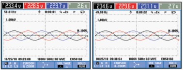 1)三相電壓波形前后對(duì)比,見(jiàn)圖2、圖3.