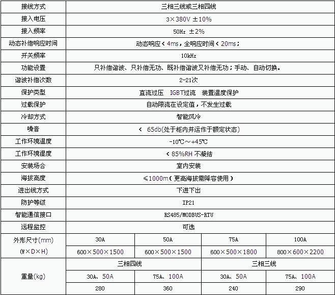 3.2 ANAPF有源電力濾波裝置的技術(shù)參數(shù)