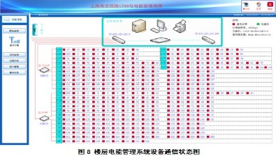 (7)通訊狀態(tài)顯示(如圖8所示):顯示所有儀表的通信狀態(tài),根據(jù)儀表所處總線、配電室或樓層位置劃分,標(biāo)注其通信地址和通信狀態(tài)。