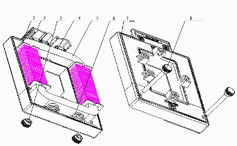 1-骨架線圈,2-透明翻蓋,3-安裝螺母,4-接線端子,5-鐵芯,6-彈簧,7-外殼,8-安裝螺釘。