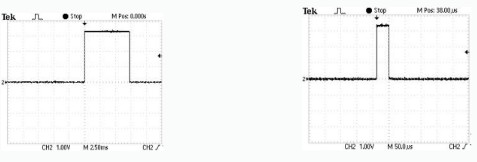 從在實(shí)際應(yīng)用中,為了滿足風(fēng)電系統(tǒng)快速響應(yīng)的要求,j可取64點(diǎn),N只取2,僅計(jì)算基波電壓、電流和相角差等參數(shù),在同等條件下未優(yōu)化DFT運(yùn)算時(shí)間(圖4)和優(yōu)化DFT運(yùn)算時(shí)間(圖5)經(jīng)測(cè)試對(duì)比,計(jì)算單路信號(hào)一次DFT運(yùn)算僅需40us,大大提高了運(yùn)算速度。