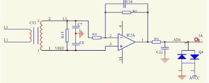 信號(hào)采集包括電壓信號(hào)、電流信號(hào)和頻率信號(hào):電壓信號(hào)采用分壓電阻輸入,電流信號(hào)采用互感器隔離輸入,將交流信號(hào)抬高后,通過放大電路將信號(hào)進(jìn)行放大,最后將信號(hào)送入CPU進(jìn)行軟件差分運(yùn)算。