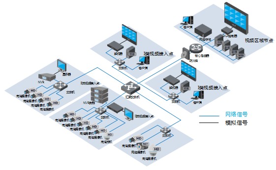 現(xiàn)場監(jiān)控點攝像機(視頻采集點)就近接入各視頻接入節(jié)點,并接受監(jiān)控中心指令。在客運專線公司、車務段/站、工區(qū)、綜合維修管理中心、牽引變電所、信號中繼站、區(qū)間無線基站等地的通號機房內設視頻接入節(jié)點