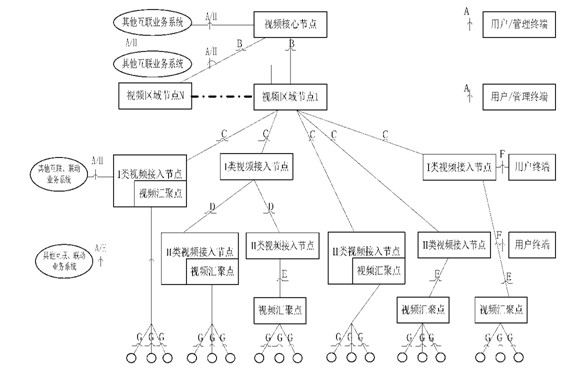 鐵路綜合視頻監(jiān)控系統(tǒng)是一個多級管理、多級轉發(fā)、多級存儲的大型網(wǎng)絡化視頻監(jiān)控系統(tǒng),下圖是新頒布的技術規(guī)范對鐵路視頻監(jiān)控系統(tǒng)整體結構的抽象描述。