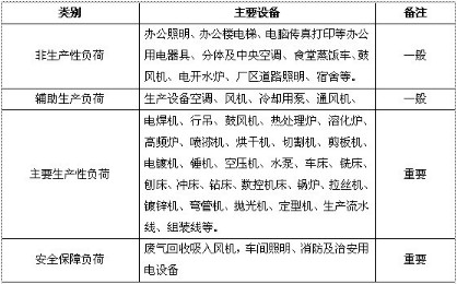 本級可停的用電設(shè)備有:電開水爐、廠區(qū)道路照明、食堂、宿舍、辦公空調(diào)、辦公照明、辦公樓電梯、廠房照明、廠房空調(diào)、電焊機、彎管機、拋光機、定型機、車床、銑床、刨床、沖床、鉆床、空錘機、空壓機、切割機、剪板機、噴漆機、烘干機、電鍍機、行吊、吊車、拉絲機、鍍鋅機、鼓風(fēng)機等。