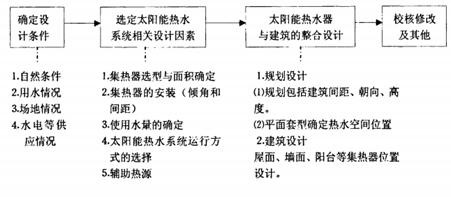 在建筑設(shè)計中考慮應(yīng)用太陽能熱水系統(tǒng),建筑師首先面臨的是對太陽能熱水系統(tǒng)形式的合理選擇。所以除了對太陽能熱水設(shè)備有初步的了解之外,還要象一般建筑設(shè)計一樣,首先應(yīng)該確認(rèn)的就是影響太陽能熱水系統(tǒng)設(shè)置的設(shè)計條件,因地制宜、優(yōu)化選用。
