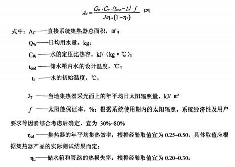 集熱器總面積可以根據(jù)用戶的每日用水量和用水溫度確定,按下面公式計算: