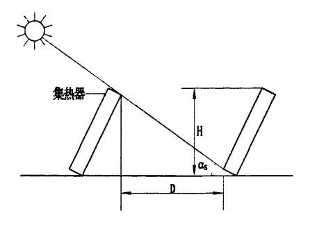 若在平屋面上設(shè)計安裝多排整體式太陽能熱水器(或集熱器)時,需要考慮到前后排的遮擋問題,因此必須通過一定的計算得出排與排之間不遮陽的最小間距。