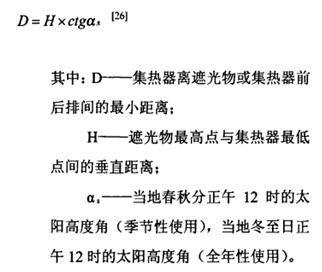 集熱器與遮光物或集熱器前后排間的最小距離可按公式計算: