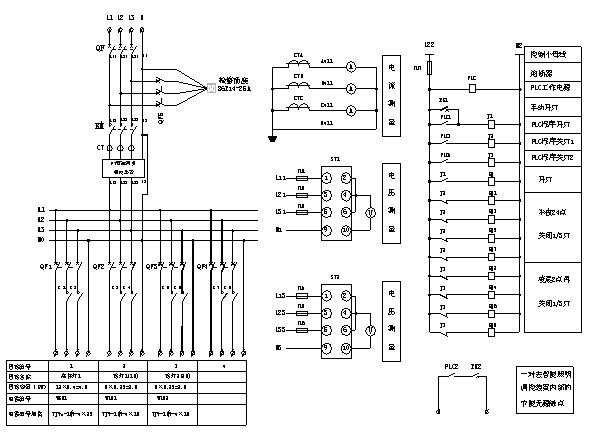 智能照明調(diào)控節(jié)能裝置與低壓配電設(shè)備一起組成完整的照明控制裝置,其分為開(kāi)、關(guān)燈及節(jié)能時(shí)間控制、主電路保護(hù)和自動(dòng)、手動(dòng)控制開(kāi)關(guān)和維修插座部分。圖3為智能照明調(diào)控節(jié)能裝置配電系統(tǒng)圖。工作過(guò)程是PLC1或光控或手動(dòng)使J1吸合,進(jìn)而KM吸合,接通全部照明回路,調(diào)控裝置開(kāi)始按圖2的t1~t3曲線段工作。到PLC2給調(diào)控裝置中的“節(jié)能端 子”一個(gè)短接信號(hào),調(diào)控裝置按圖2的t3~t5曲線段工作直到該短路信號(hào)撤離,此時(shí)再按圖2的t5~t7曲線段工作直到PLC或光控或手動(dòng)使J1關(guān)斷失電 為止,一個(gè)循環(huán)結(jié)束。另外,如需要PLC3使J2吸合,進(jìn)而KM1、KM3、KM5、KM7失電,即24點(diǎn)后可關(guān)閉1/3照明燈,至凌晨2點(diǎn)PLC4使 J3吸合,進(jìn)而KM2、KM4、KM6、KM8失電,又關(guān)閉1/3照明燈。