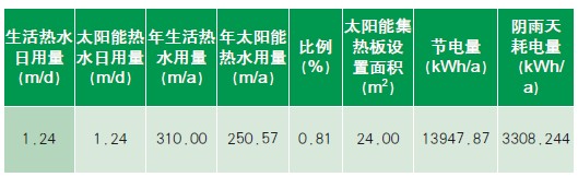 太陽能熱水系統(tǒng)日產(chǎn)水量1.24m3/d,全年所能提供的熱水量