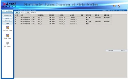 根據(jù)本系統(tǒng)的設(shè)計意圖,如果重要回路或者照明回路三相中某一相電流負(fù)荷超過額定值的90%,系統(tǒng)必須立刻發(fā)出聲光報警并彈出指示框指明報警源,提醒管理人員注意負(fù)載的三相平衡和負(fù)載率;根據(jù)現(xiàn)場技術(shù)人員要求,追求當(dāng)某一個低壓配電回路斷路器發(fā)生變位時,同樣發(fā)出聲光報警和彈出報警框指明報警源的功能。報警記錄存于數(shù)據(jù)庫中,保存3年,用戶可以通過查詢功能查看指定時間域內(nèi)發(fā)生的所有報警信息。