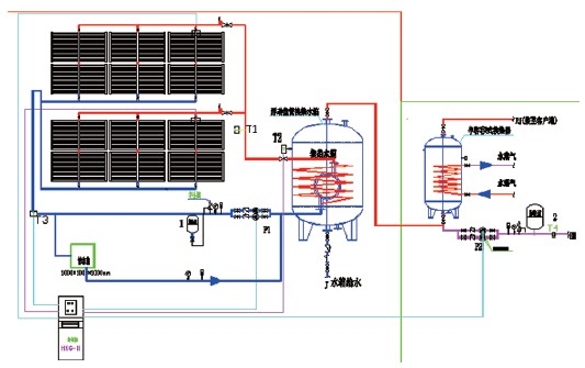 收太陽能產(chǎn)生的熱量通過盤管傳遞給水箱。經(jīng)過太陽能加熱,承