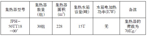 50TX18-00°型三高集熱站30組,每組面積為 7.6m2,總集熱面積228m2。