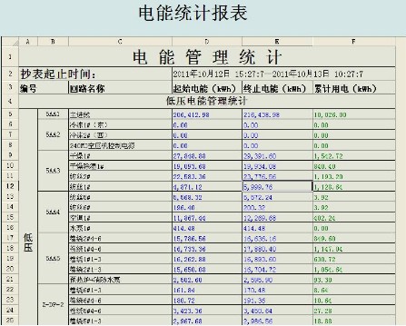 系統(tǒng)采集的有功電度數(shù)據(jù),按照回路名稱的不同,自動生成日報表、月報表和年報表并有報表打印功能,并可對某一回路的某一時間段內(nèi)的用電量進(jìn)行查詢與打印,同時這些報表也能以Excel的格式導(dǎo)出。